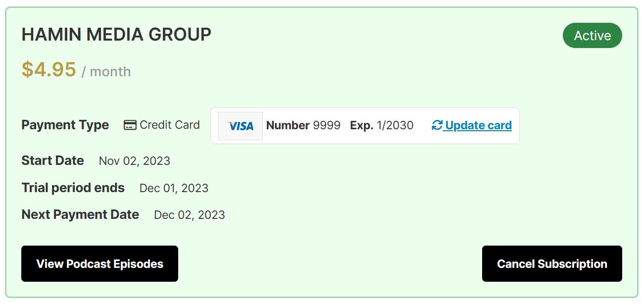 - At the end of the subscription cancellation period, re-subscribe using your PayPal account.